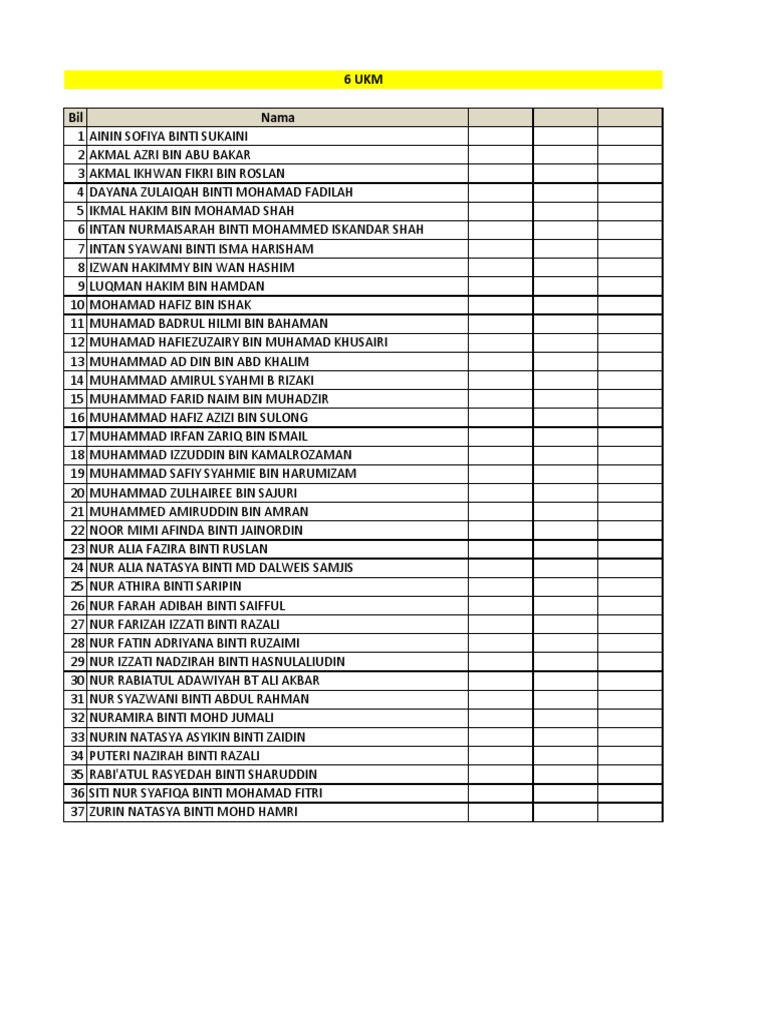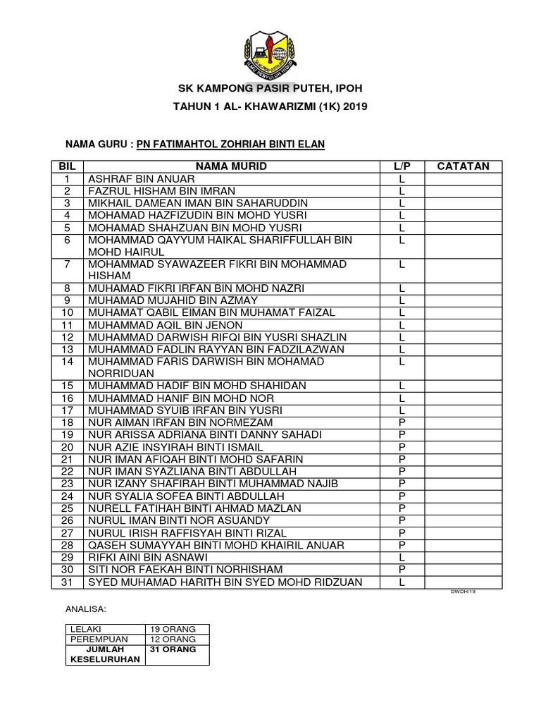 Senarai Nama Murid Ikut Bulan Kelahiran Pdf