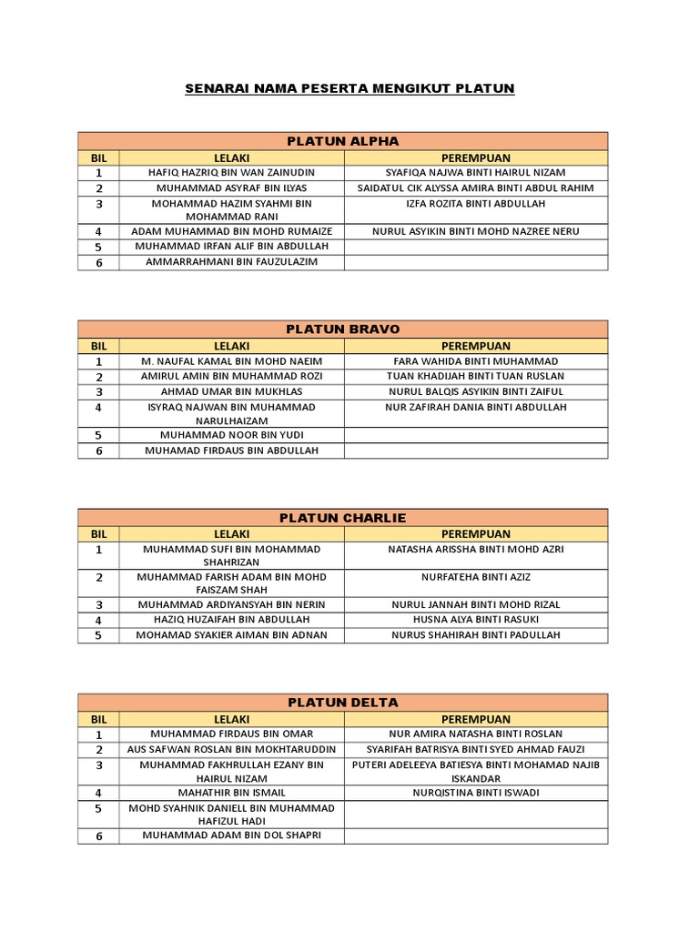 Senarai Nama Peserta Mengikut Platun Pdf
